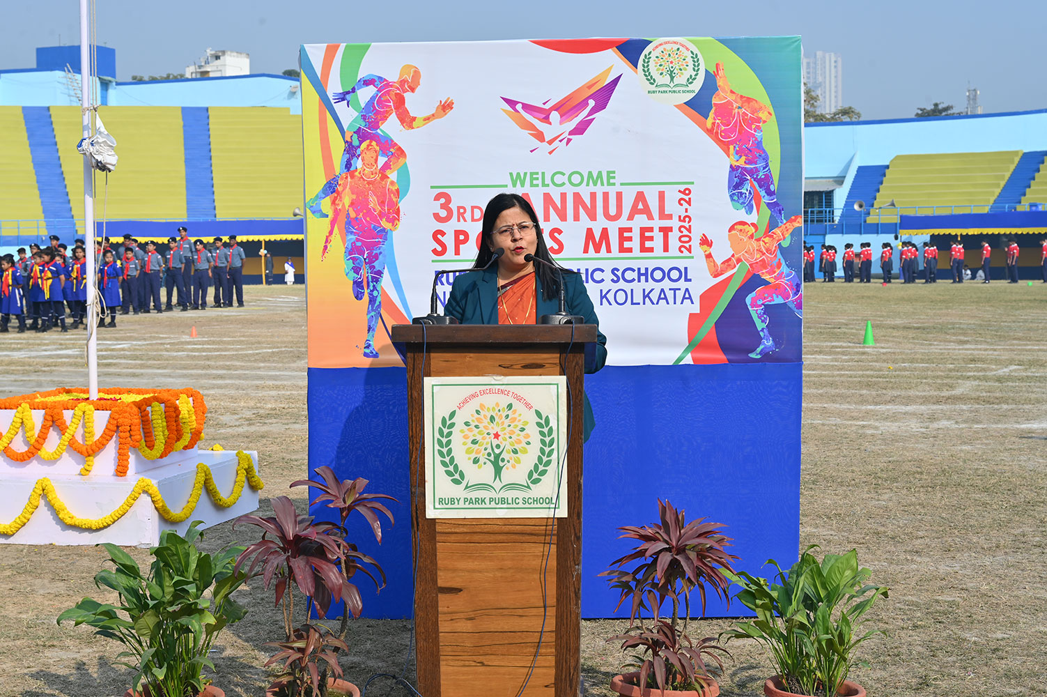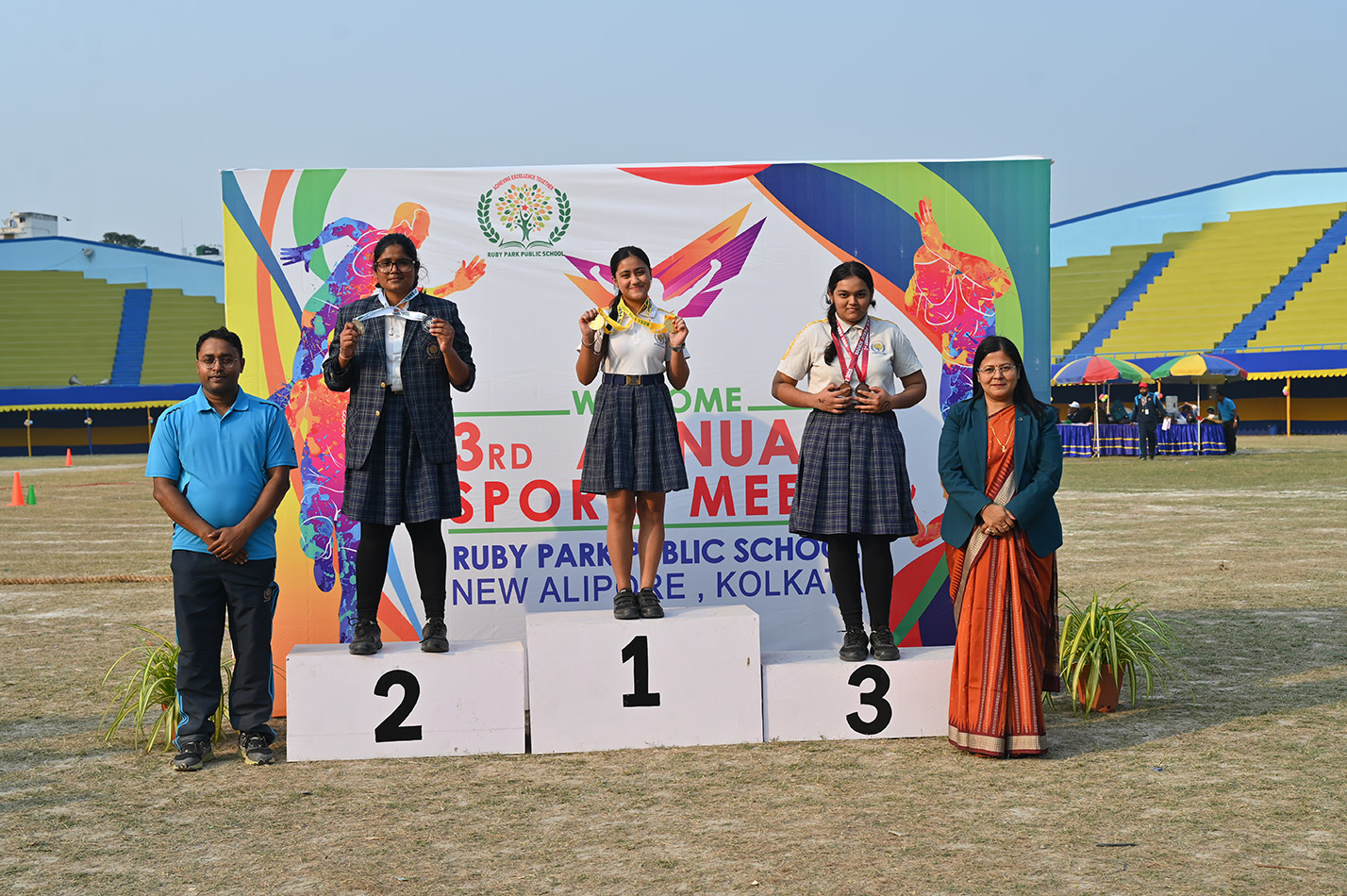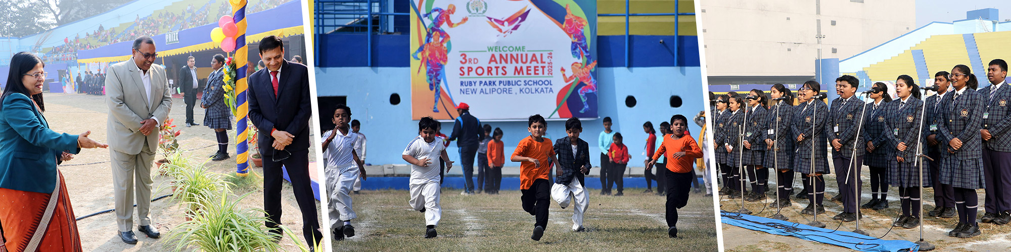 Ruby Park Public School celebrated its much-anticipitated Third Annual Sports Day on 13th December 2025 with a veritable effulgence of spirit and unmitigated enthusiasm at the Gitanjali Stadium. The magnificent ceremonial grand day commenced with a mellifluously orchestrated choir performance that mesmerized the gathering, creating a spell of enchantment before the day commenced with an equal aplomb and catchet.