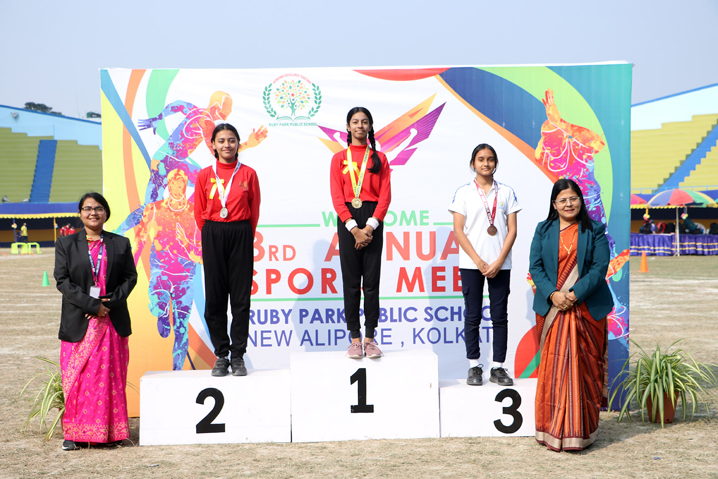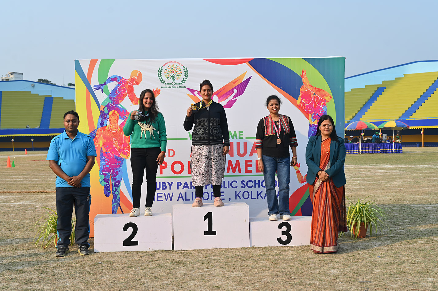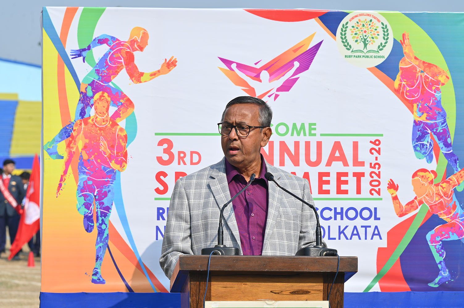 Ruby Park Public School celebrated its much-anticipitated Third Annual Sports Day on 13th December 2025 with a veritable effulgence of spirit and unmitigated enthusiasm at the Gitanjali Stadium. The magnificent ceremonial grand day commenced with a mellifluously orchestrated choir performance that mesmerized the gathering, creating a spell of enchantment before the day commenced with an equal aplomb and catchet.