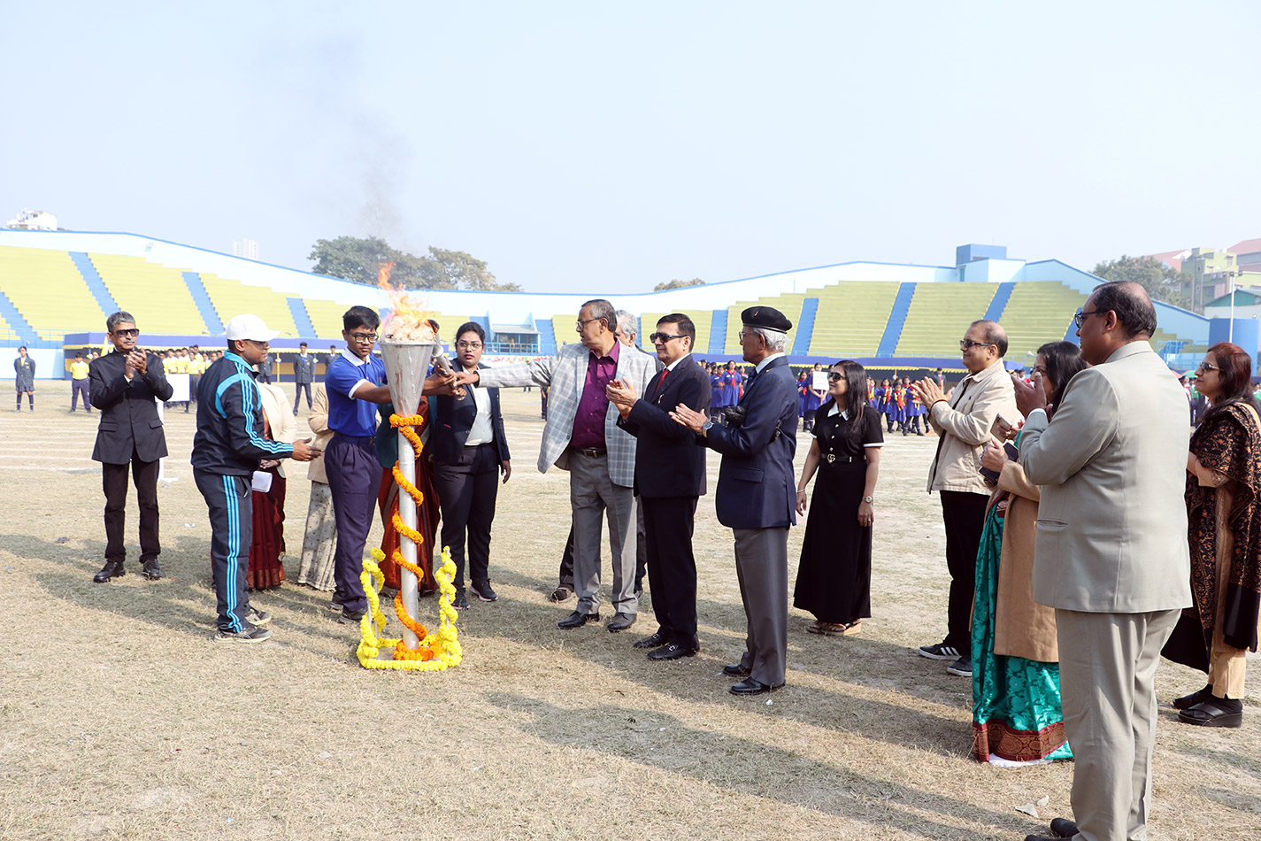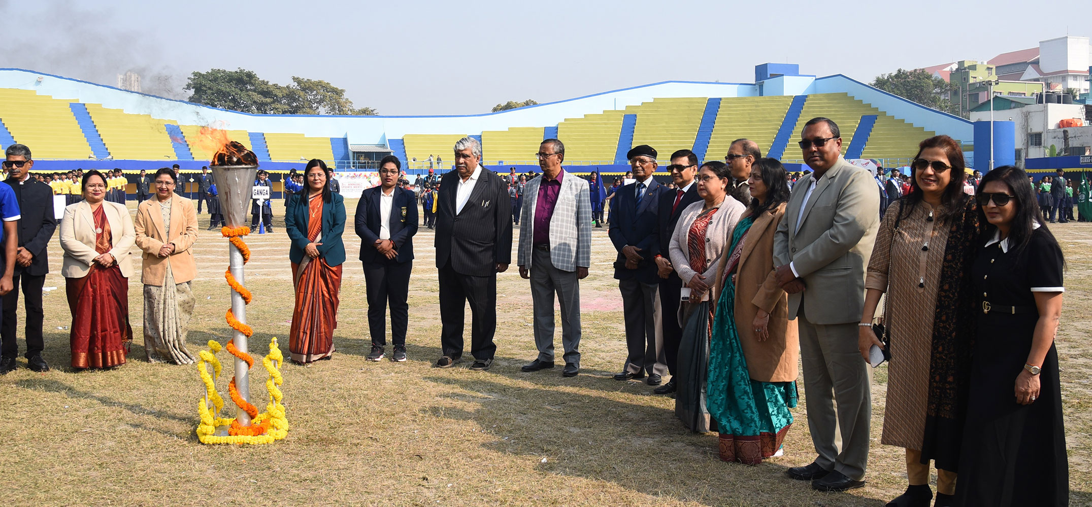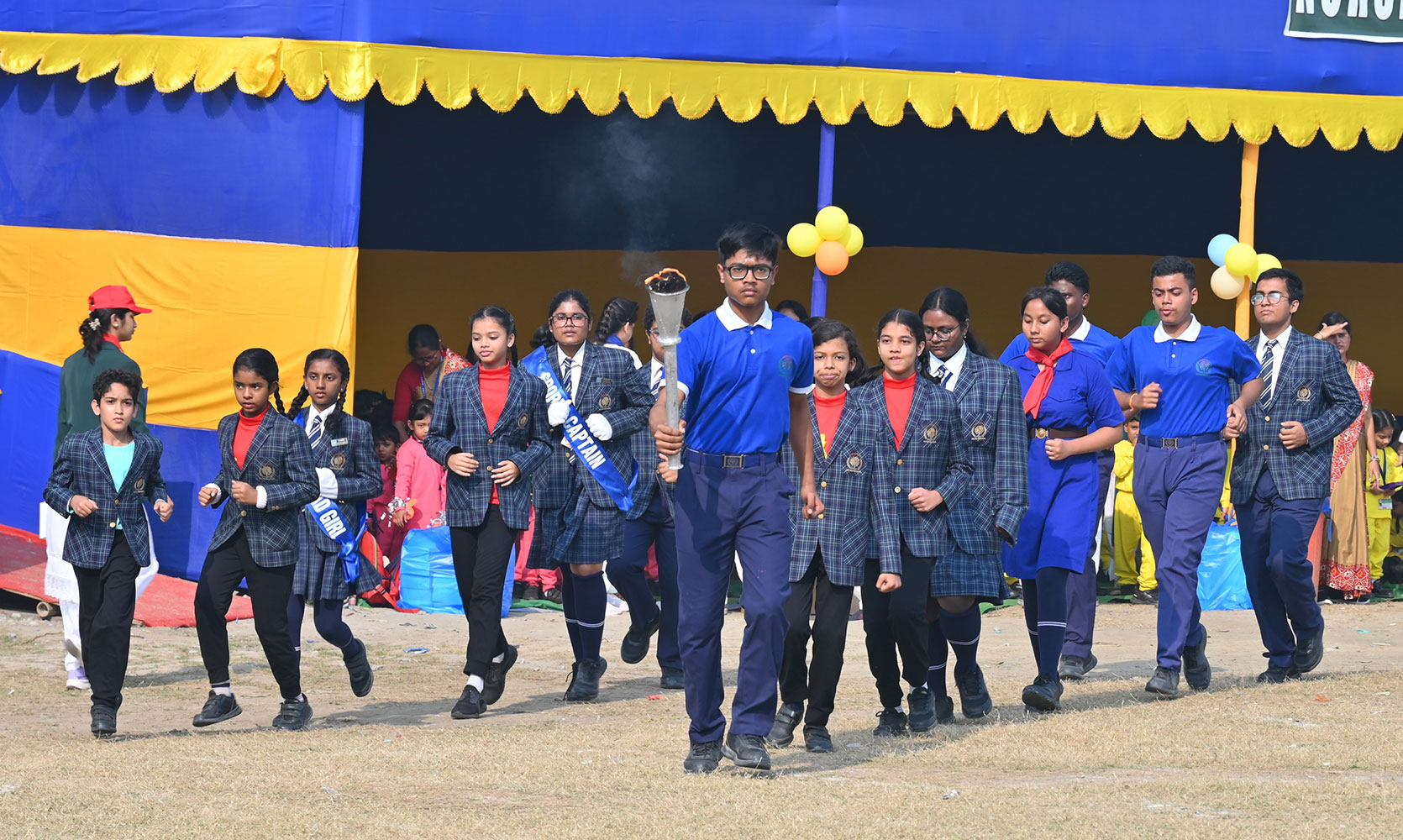 Justice Shri. Pranab Kumar Chattopadhyay presided over our 3rd Annual Sports Meet as the Chief Guest of Eminence. The occasion was resplendently graced by the Chief Guest, Mr. Biswajit Dey Chowdhury, internationally acclaimed Swimming Coach and the Guest of Honour, Ms. Sayani Ghosh, a prodigious swimming virtuoso. The august gathering was further honoured by the esteemed presence of Mr. Sushant Das, Principal of Jyotirmoy Public School, Sonarpur, who also serves as the Joint Secretary of the CBSE Kolkata Sahodaya Principals’ Complex. Ms. Tania Sen, Principal of Techno India Group Public School, Garia, CBSE Resource Person and State Co-ordinator of Vidyarthi Vigyan Manthan; Dr. Bidyunmala Salunkhe Gupta, Principal of Orchids The International School, Newtown; Ms. Susmita Pal, Principal of Shri Santoshi Maa Academy and Ms. Purnima Chatterjee, Principal of M.P. Birla Foundation Higher Secondary School, Behala.